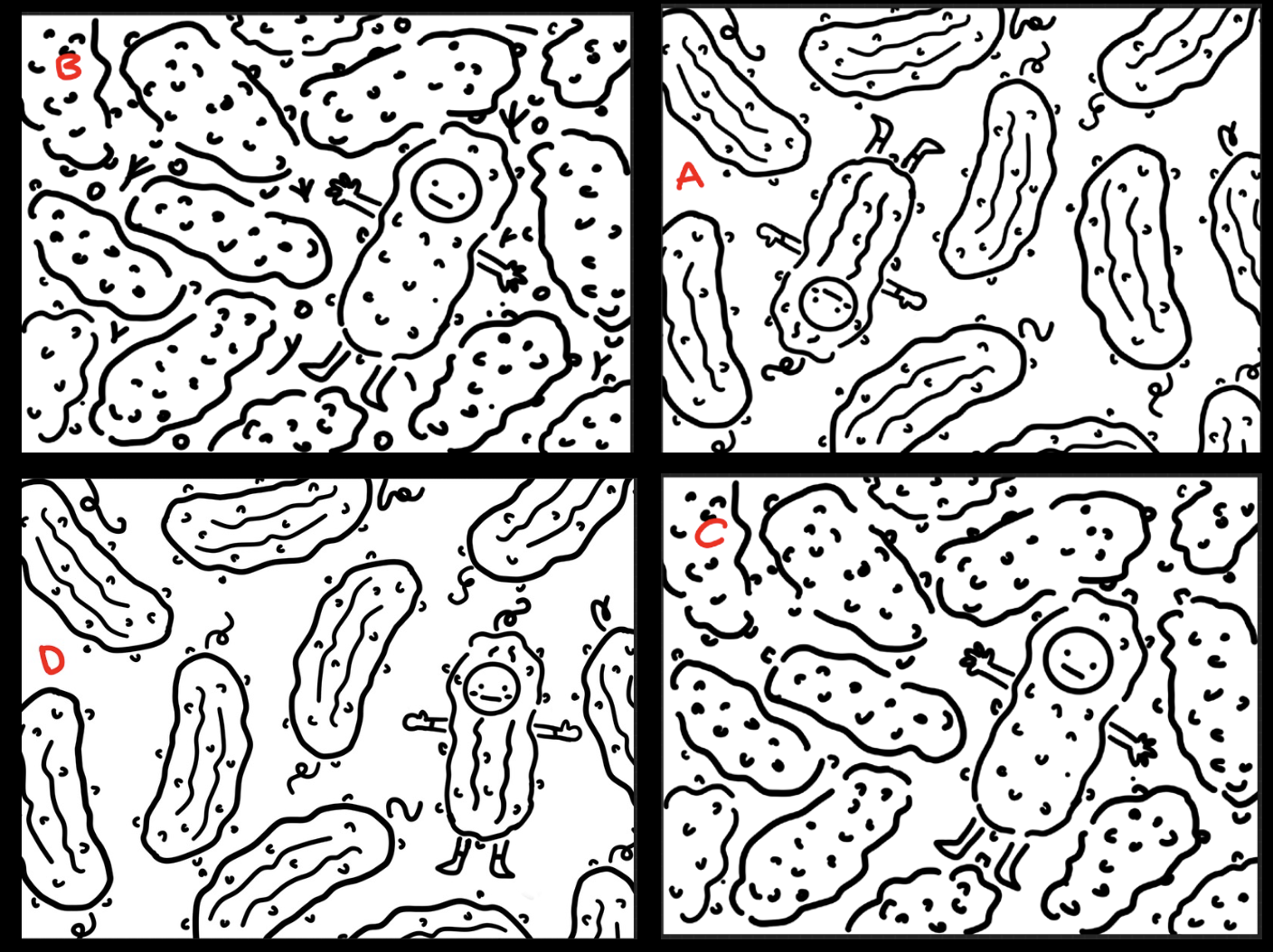 Although the expression "in a pickle" is often used humorously, it also reflects how I frequently feel overwhelmed or stuck due to school, work, and personal pressures. I approached the illustration with a playful tone, turning a stressful concept into something more light-hearted and whimsical. The drawing process allowed me to reframe the emotion behind the saying into a visual metaphor that felt relatable yet fun.