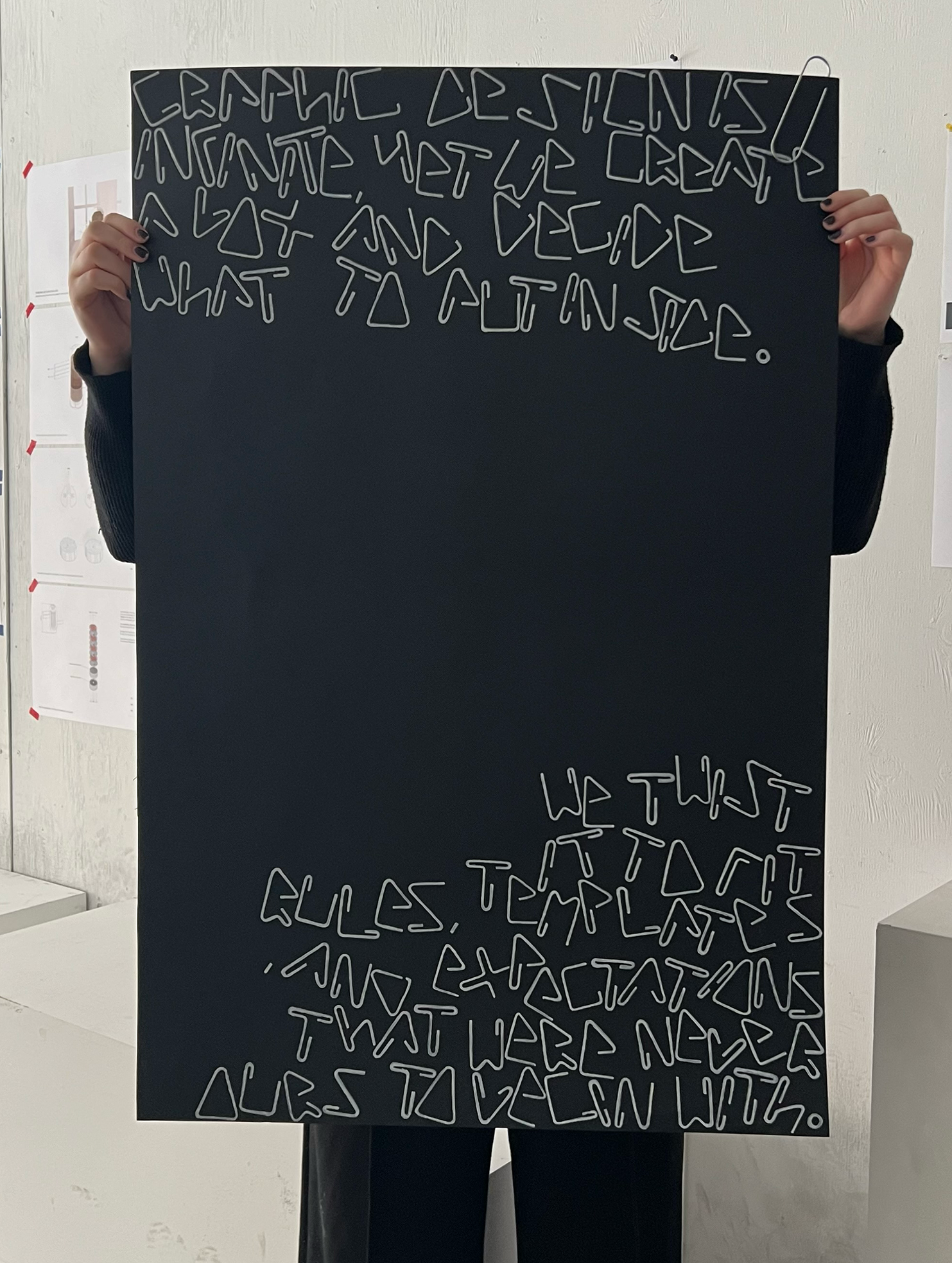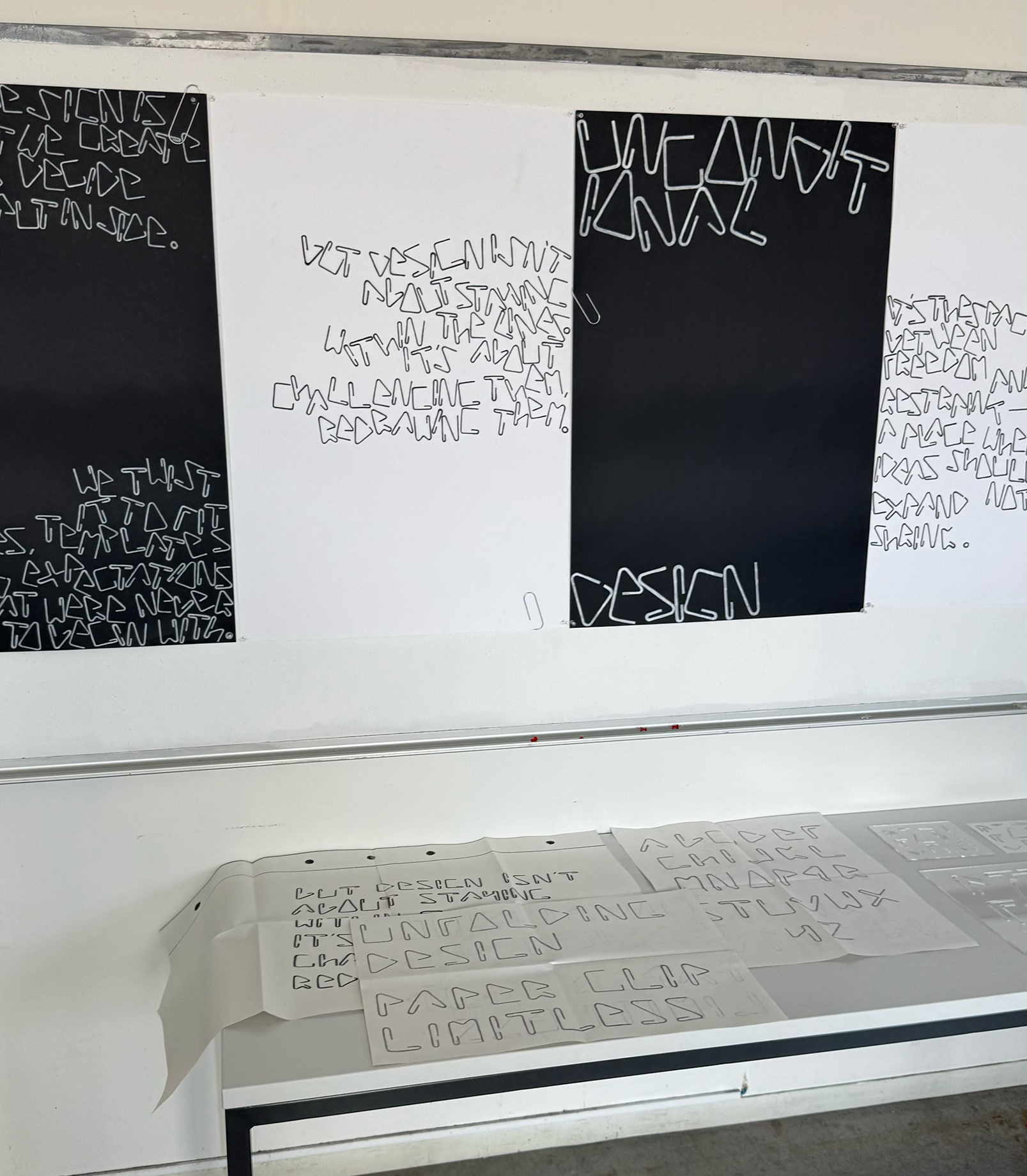 Our mission was to create a new typographic system rooted in a conceptual idea that challenges traditional design norms. We aimed to use the ordinary in extraordinary ways, choosing a paper clip as the basis for our font. The goal was to illustrate that design is not just about function or aesthetics—but about innovation, reinterpretation, and disruption.